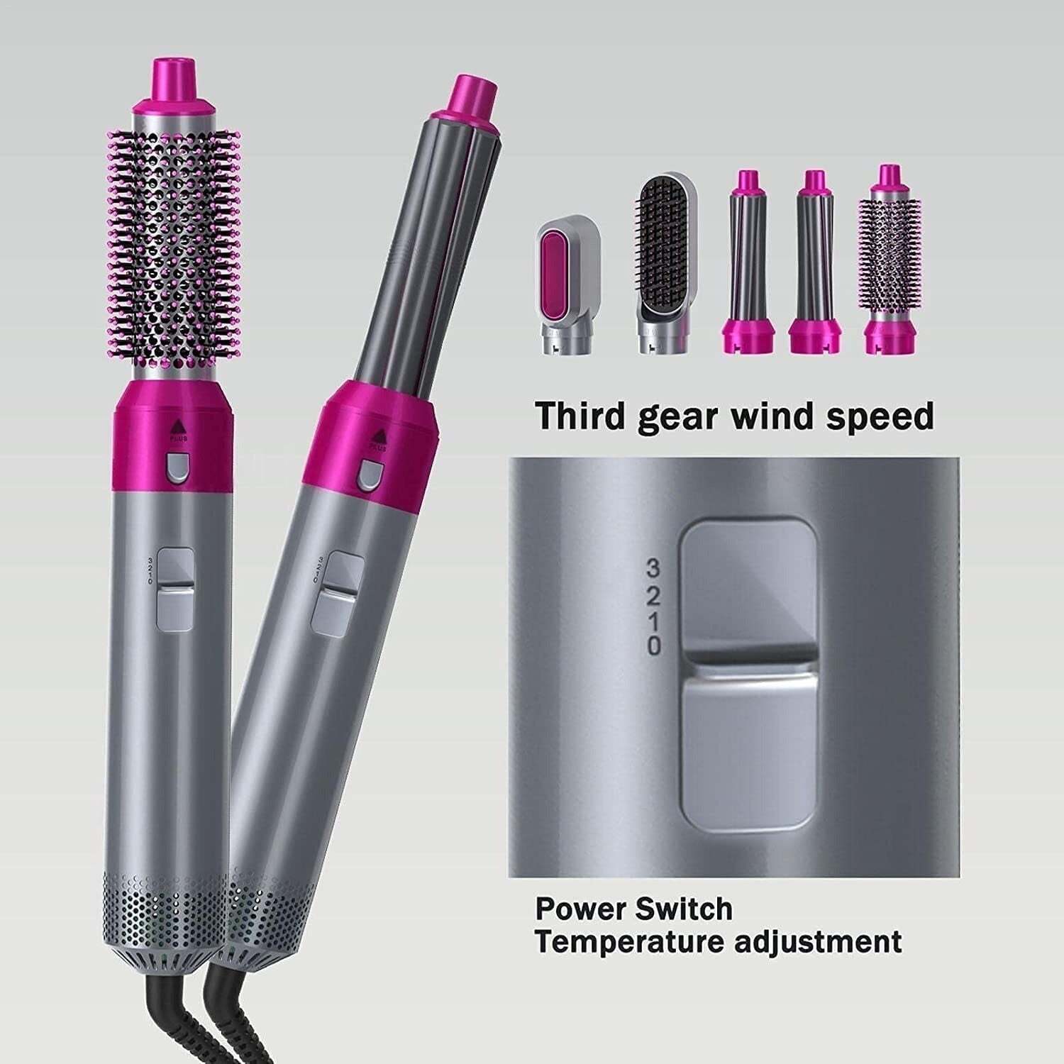The hair dryer brush comes with 5 interchangeable brush head attachments that can easily dry, straighten, curl, and add volume.