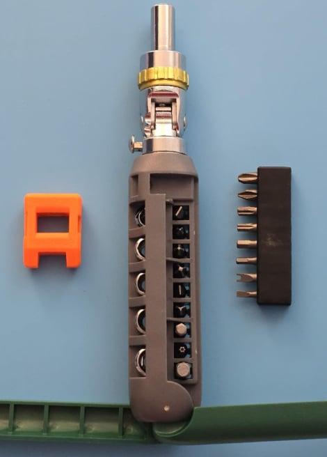 - The ergonomic ABS handle offers a slip-resistant grip and comfort during extended use. Plus, it conveniently stores up to 14 bits for quick access.